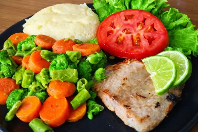 Filé de Peixe com Legumes Salteados